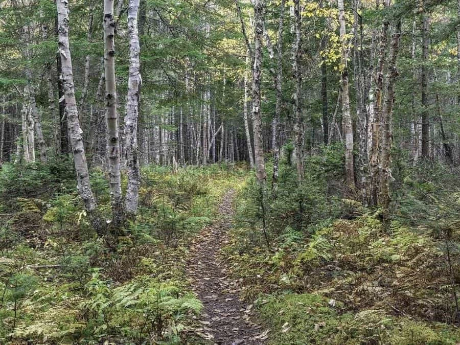 Birch Forest Wallpaper adds a rustic feeling to walls with its view of a path in a birch tree forest. Created from a high resolution photo by a Canadian photographer, it captures a leaf covered trail winding under green trees just at the brink of exploding into autumn colours. Ferns and foliage add texture to the nature scene. This mural is: