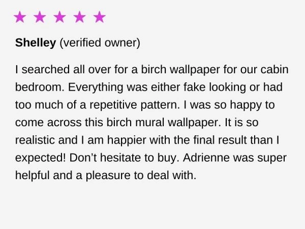 - Easy to hang. You just need a couple hours to hang this birch wallpaper. NO messing around with wallpaper glue, double cutting seams or booking the wallpaper.