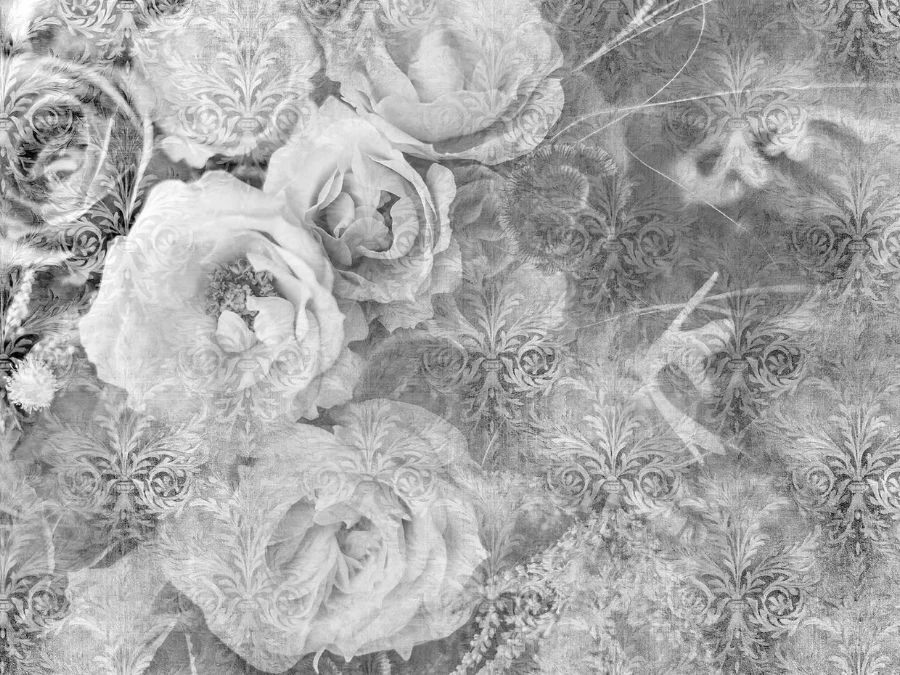 Black and White Rose Wallpaper creates graceful walls with its grey flowers on textured background. Created from a digital illustration, this gray floral wallpaper adds a gentle texture with its damask pattern overlay. It’s: