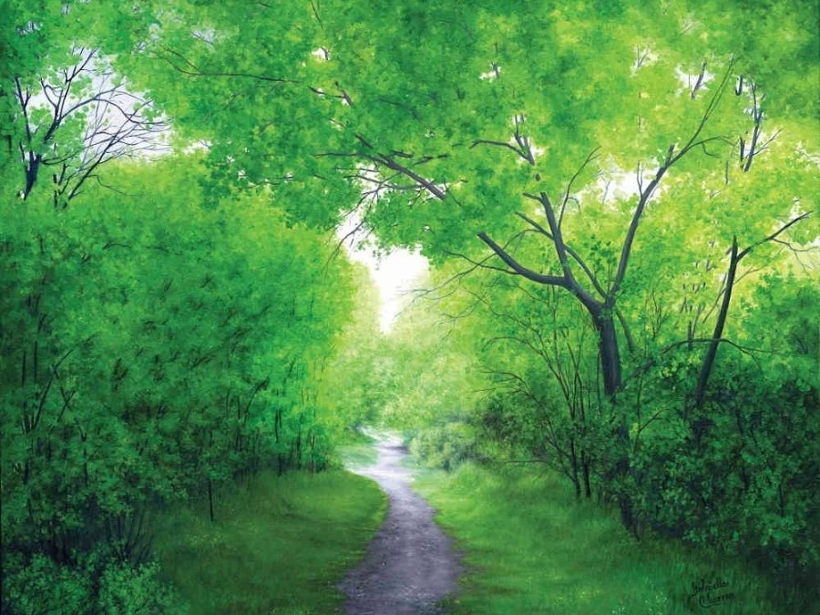 Forest Painting Wallpaper adds a magical feeling to walls with its path of dreams. Created from a painting by a Canadian artist, it captures a trail winding under emerald green trees. You’ll want to step into this mural and stroll the walkway, enjoying the beautiful nature scene. It’s: