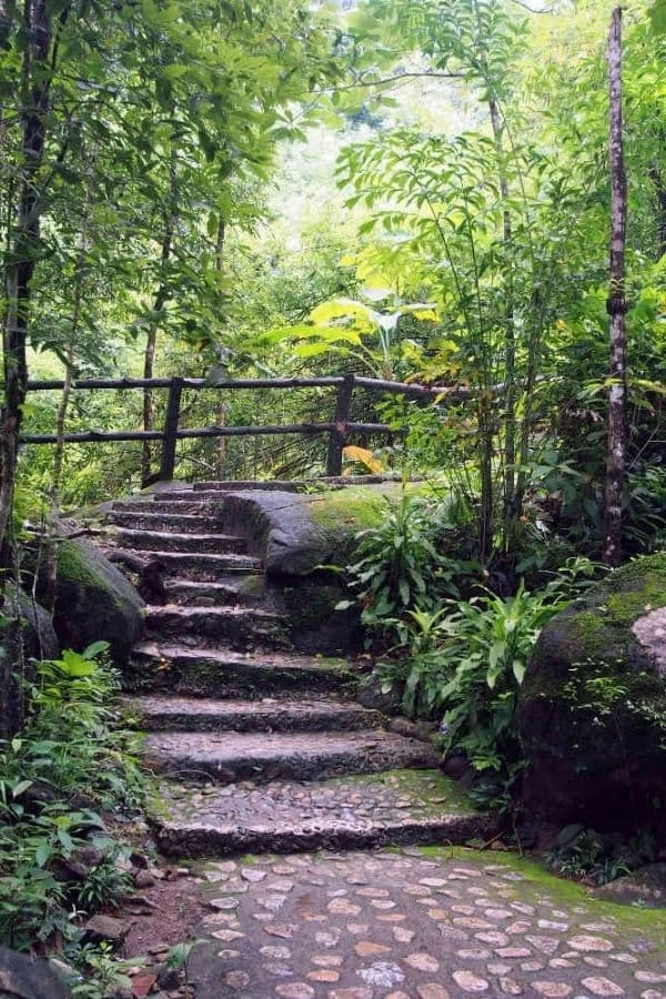 Forest Stairs Wallpaper adds a peaceful feeling to walls with its view of natural stone stairs enclosed with plants, lush trees and a wooden railing. Created from a photo, it captures a path leading to the moss-covered staircase. The narrow size of this wall mural is ideal for a closet, door, nook or small wall. It’s: