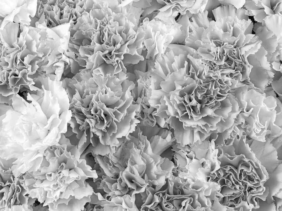 Grey and White Carnation Wallpaper creates gorgeous walls with its bouquet of carnations in black and white. Created from a high resolution photo, taken by a Canadian photographer, the black and white floral wallpaper adds a subtle texture with all the delicate petals. It’s: