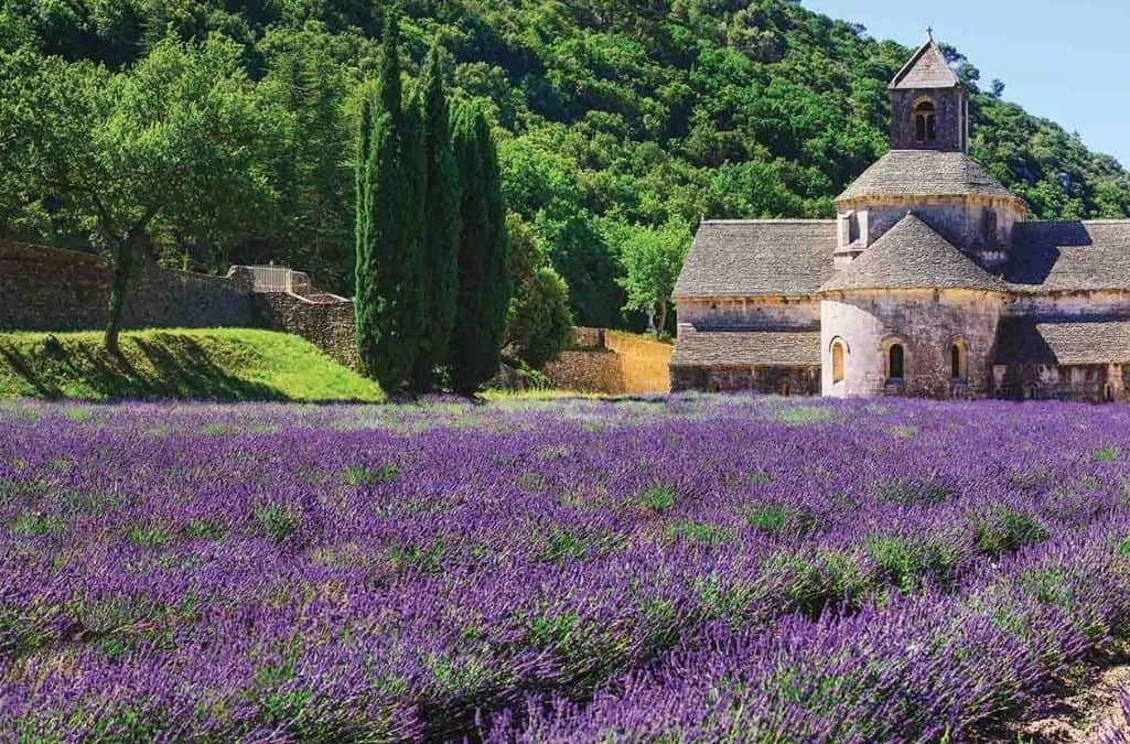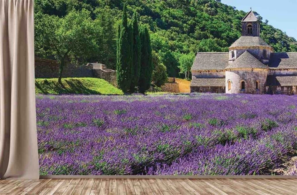 Lavender Field Wallpaper carries you away to France with its rows of beautiful, delicate purple flowers. Created from a photo, this garden wallpaper captures Senanque Abbey near the village of Gordes in Provence. You’ll imagine taking in the perfume while meditating, practicing yoga, praying, walking your treadmill or reading. It’s: