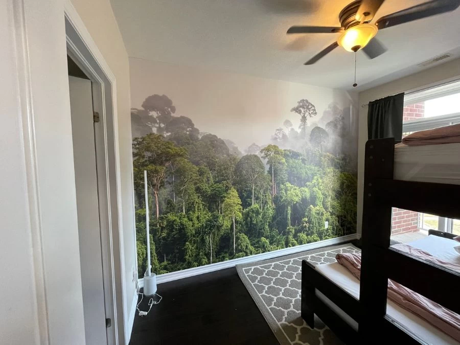 - Eco-Friendly so it’s safe to use in any room, because there are no VOCs or dangerous chemicals in the toner. This foggy jungle wallpaper is fully recyclable when you’re ready for a new design.