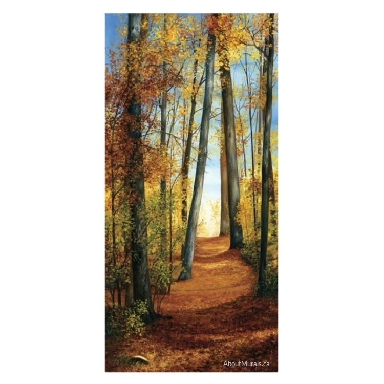 Path of Light Wall Mural warms any small space with its orange autumn woods. The fall forest wallpaper comes in a very narrow size, making it perfect to use on stair risers, in a closet, on a door or a tight nook.