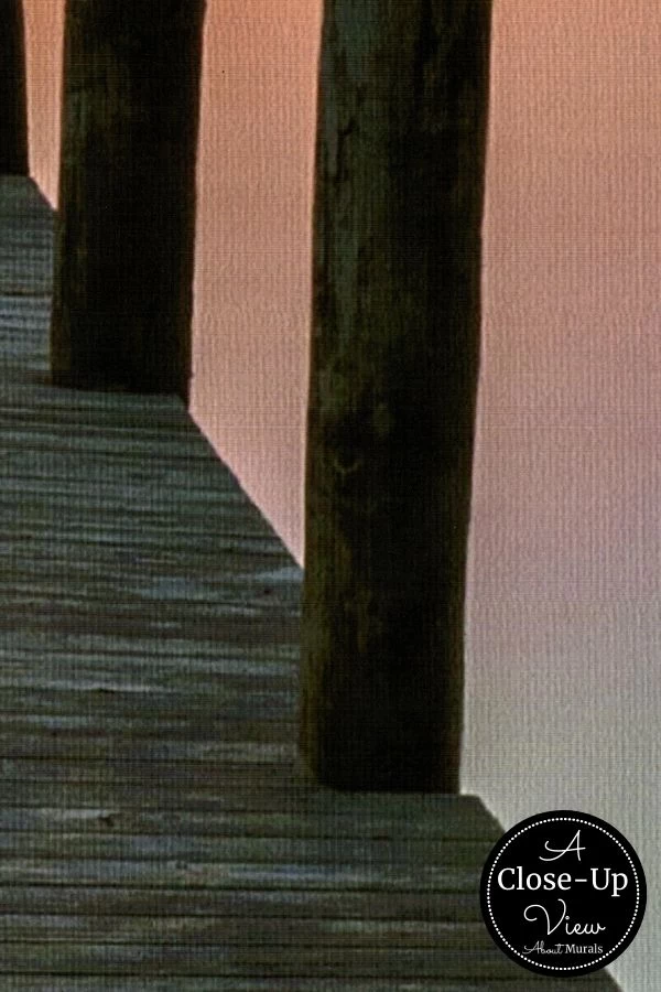 Pier Wallpaper adds a beautiful feeling to walls with its view of a dock on a lake at sunset. Created from a photo, it captures Ashness Jetty under a pink and blue sky reflected in glassy water. Youâll want to step into this mural and stroll the wood bridge, take in the views of the mountains on the horizon, and enjoy the landscape at Derwentwater in the Lake District of the UK. Itâs:
