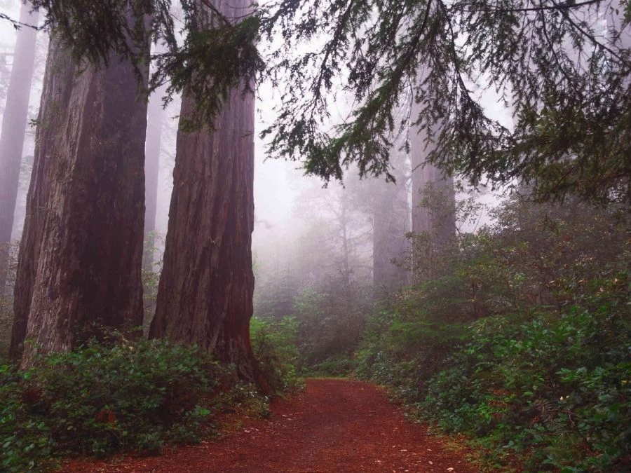 Redwood Wallpaper adds a mysterious feeling to walls with its tall trees against a foggy background in Redwood National Park, California. Created from a photo, it captures a trail of red mulch meandering through an ancient redwood forest under immense sequoia trees. You almost want to step onto the path and hike into the misty coniferous trees that have grown there for thousands of years. It’s: