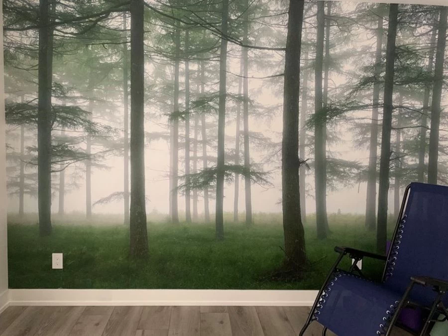 - Easy to hang. You just need a couple hours to hang this foggy forest wallpaper. NO messing around with wallpaper glue, double cutting seams or booking the wallpaper.