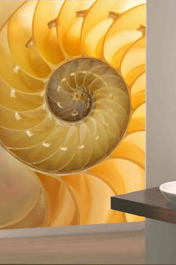 Seashell Wallpaper adds a summer beach vibe to walls with its vibrant yellow nautilus. Created from a photo, it captures the shell up close with all its chambers. It’s an easy way to add an abstract tropical design to your room. The narrow size is perfect for a closet, nook or small wall. This spiral mural is: