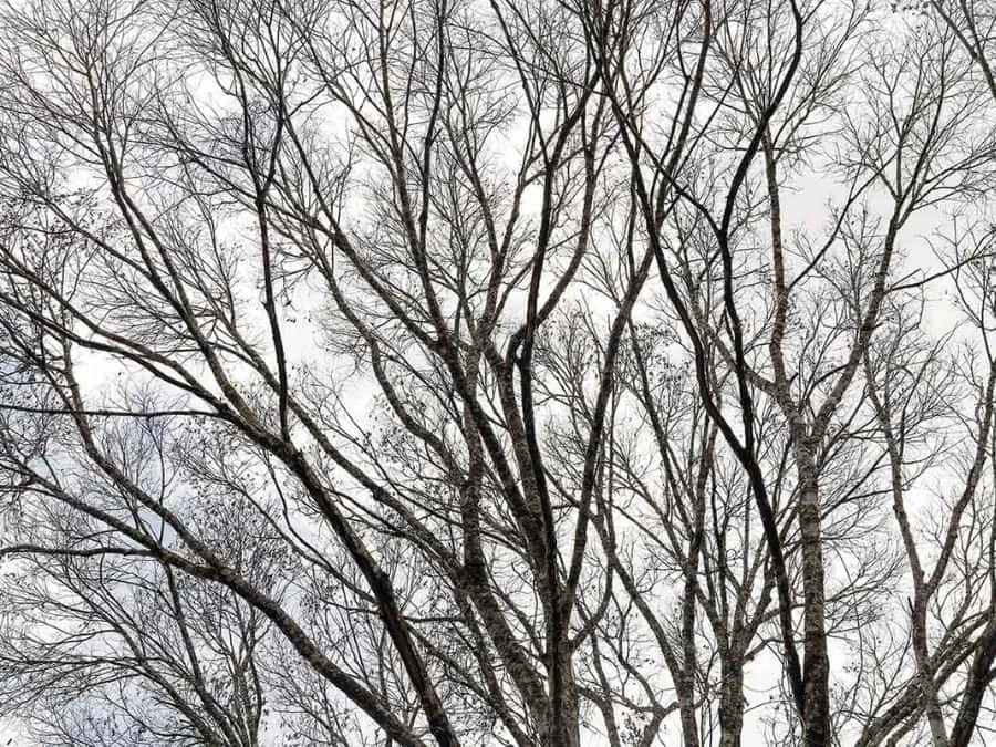 Tree Branch Wallpaper adds a cool feeling to walls with its silhouette of a tree late in the fall. Created from a photo, it captures all the texture of the branches and last few dried leaves against a light grey sky. This bare tree wall mural is:
