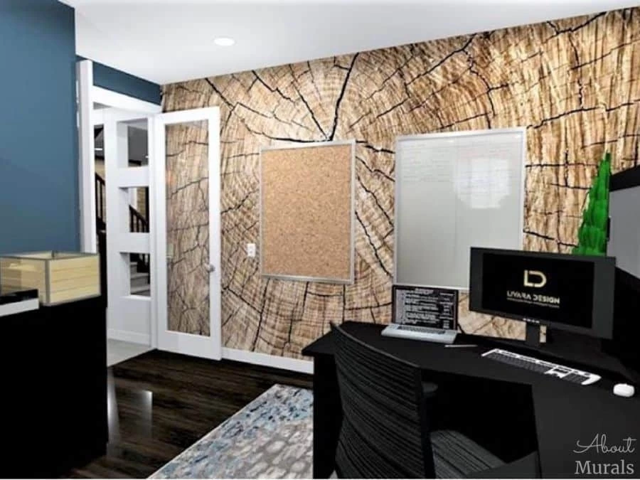 Zoom on a Tree Trunk Wall Mural makes a stunning statement to bedroom, living room, office or nursery walls. You can see all the log texture in the cracked wood wallpaper, adding a rustic and natural feel to your room. This wood wallpaper is created from a close-up photo of a cross section of a wooden log.